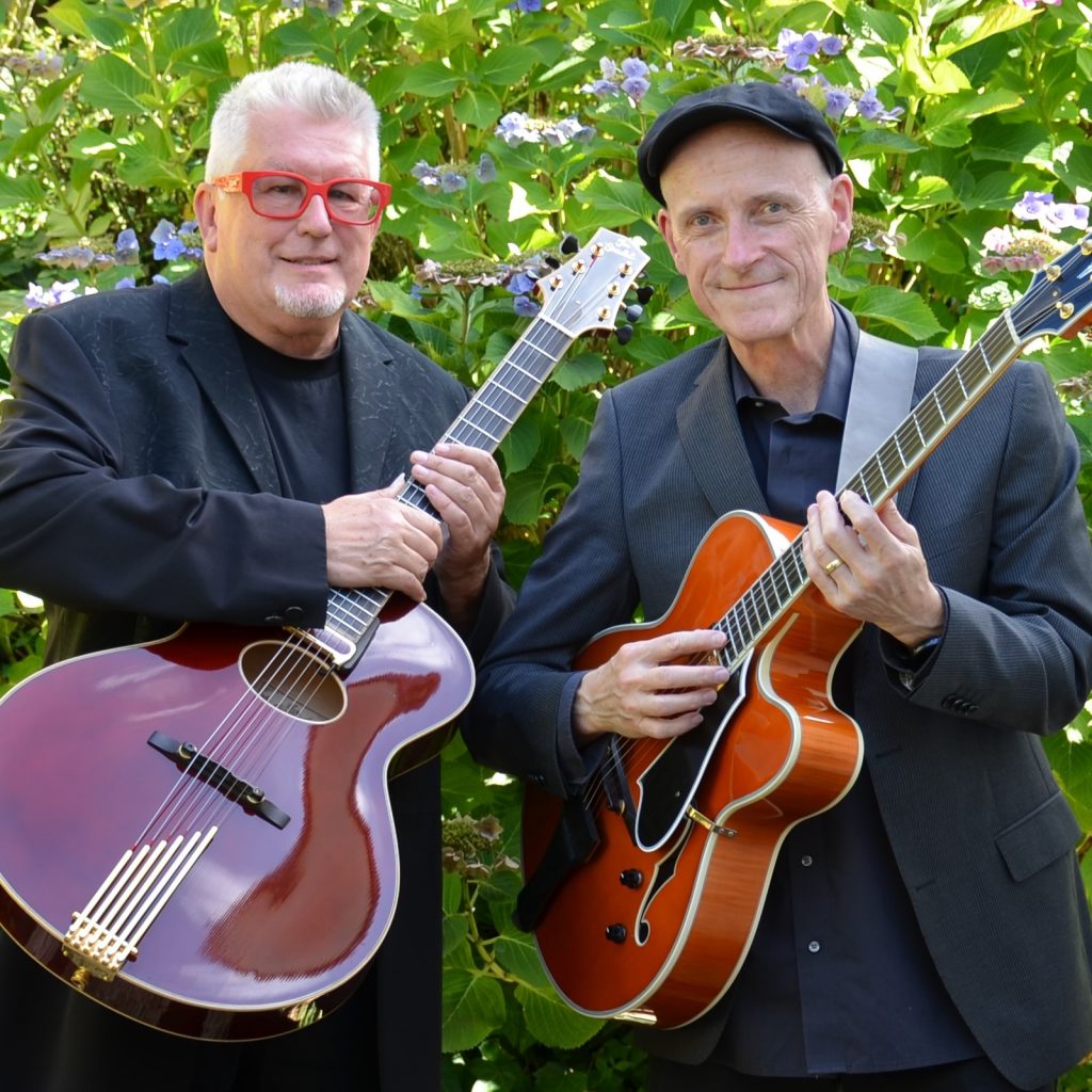 Archtop Affairs ist das Duo von Dietmar Kunzler (Gitarre, Gesang, Jazz-Panflöte) und Ivo Müller (Gitarre, Gesang) – zwei Musiker mit Charme, Tiefe und einem feinen Gespür für die großen Traditionen des Jazz und Swing. Mit großer Spielfreude und respektvoller Hingabe interpretieren Archtop Affairs Klassiker von Eddie Lang, Joe Pass, Herb Ellis, George Benson und natürlich Django Reinhardt – mal originalgetreu, mal in frischen eigenen Arrangements, immer mit dem Ohr für das Besondere.